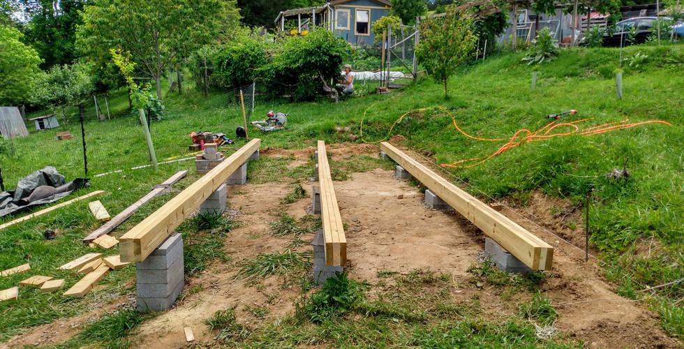 On an early June morning in 2020 I awoke with the determination to break ground on my new pottery studio building. I had a sketch (ok, I had a 3d modeled floor plan, but that's how I roll), a sort of flattish spot, and all the building know-how that comes from slapping together a roofless green house from a bunch of old windows. A year and a half later, with a lot of help from Google, YouTube, and the occasional second set of capable hands in the form of one Mr. M. Jackson, and my dream studio has come true! It's just steps from my house, the perfect size for one potter (the maximum amount of people I like working in my studio at any given time, with a few exceptions), and oh so perfect! Mountain views, 6.1 surround sound, wide screen TV (usually displaying my current musical selection)... a fully equipped, beautiful, magnificent pottery studio! I really like it, like... a lot! This is the first installment of this two part blog. Part two will feature pictures of the finished and ready-to-go-studio as well as proof that work is indeed being done in it! I have the entire beginning to end photo documentary on my personal Facebook profile, but I thought I'd share a few shots from various stages of the build here on my website. Hope you enjoy!